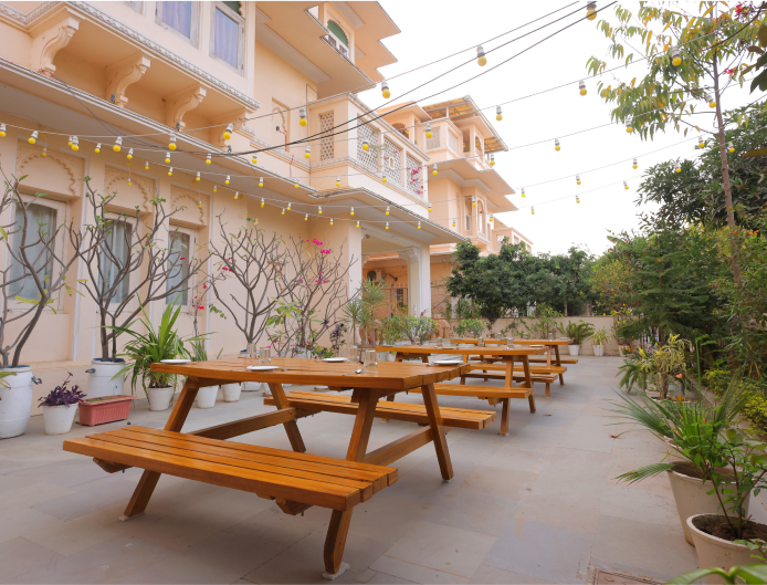 Unveil the art of hospitality in Mewar-inspired luxury. Wander through curated rooms, art-filled stairways, and serene vistas. Your oasis amid Udaipur
